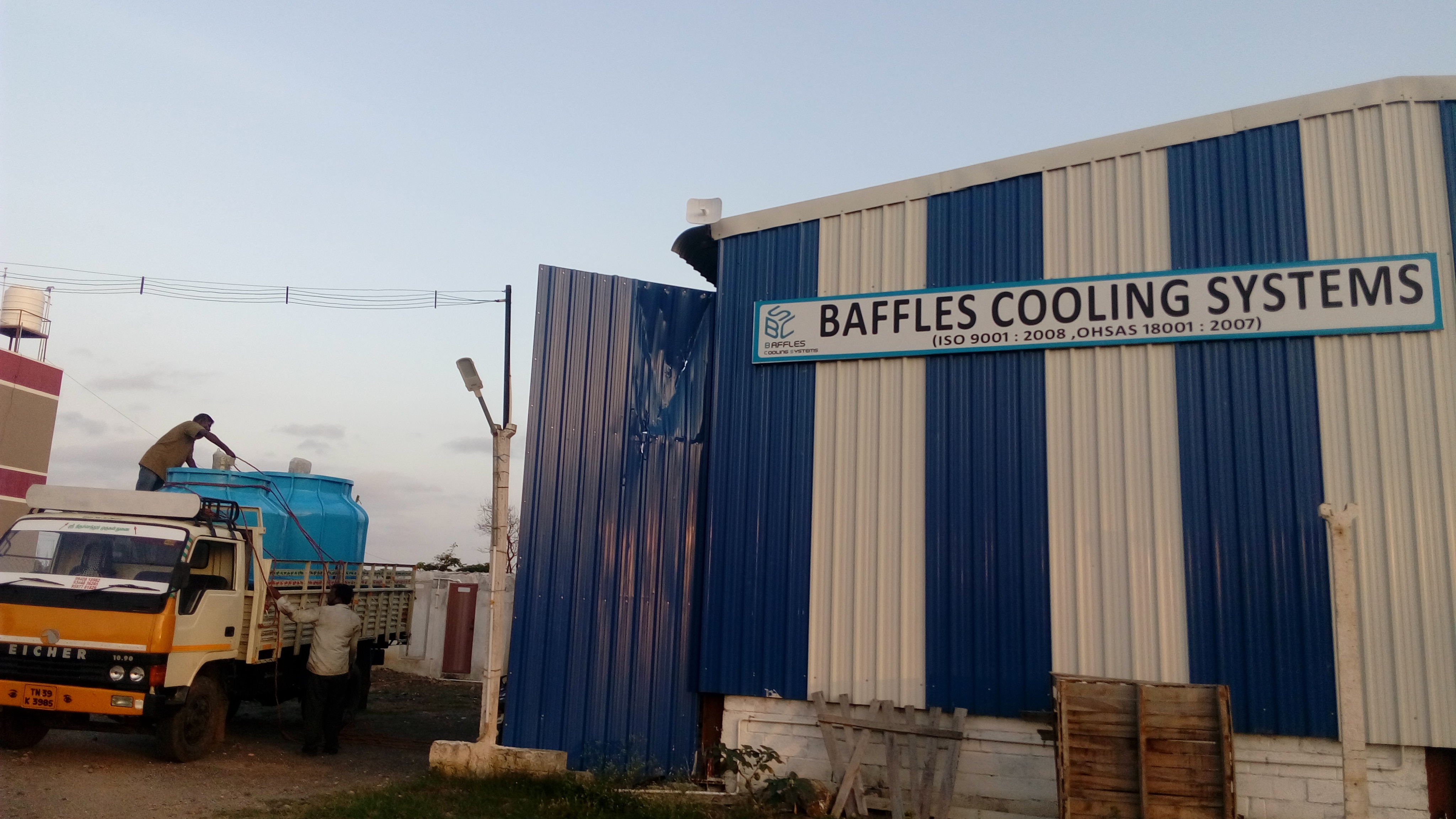Cooling tower is a heat rejection device . In all the sectors has been used in this type of FRP cooling tower.Its main function is that removing heat from the hot water.In machinery process, hot water comes from the machine into cooling tower . It will be decrease the temperature at Atmospheric range and again the same water is to used for recycling purpose . Nowadays customer is preferred in this type of FRP cooling tower.FRP means FIBRE REINFORCEMENT PLASTICS.FRP cooling tower has been recently developed material for extra strengthening purpose. Its main advantage is very strength.FRP coating cooling tower can be 2 to 10 times stronger than steel plates and while their weight is just 20% of that steel. Baffles cooling Systems to dedicate and specialized design for FRP COOLING TOWER . We have designed FRP cooling tower as per the customer requirement specification. Our design teams analyze and calculate the process design . We have 10 TR to 1000 TR and above 1000 TR we will connect serial connection. FRP Cooling Tower better features and performance : • We have small size to bigger size of the FRP Cooling tower. Product range from 10 TR ,15 TR , 20 TR, 25 TR ,30 TR , 50 TR ,80 TR , 100 TR, 150 TR, 200 TR, 250 TR, 300 TR, 350 TR, 400 TR, 500 TR ,800 TR, 1000 TR . • We have experienced FRP molders .So FRP has been strong bonding of fibre matrix with Resin matrix. • Its easily remove the heat from the process. Heat dissipation easily will be conducting. • All the steel material to be GALVANIZED for anti corrosion purpose. • We have experienced FRP COOLING TOWER ERECTION TEAM . So easily erection and commissioning for avoiding extra days for run the process. • We monitoring periodically maintenance and asking performance to supplied FRP cooling tower . Advantage of FRP cooling tower : Corrosion resistance Light Weight Electromagnetic Neutrality Thermal insulation Against De-Scaling Structure build in any area like sea regions , top of the sealing area. We offer Cooling Tower spare parts : • COOLING TOWER MOTOR ( 0.5 HP,1 HP,1.5HP , 2HP , 3HP,5HP,7.5HP,10 HP,15 HP) • GEOMETRIC FANS ( ALUMINUM / PVC ) ( 4 LEAF , 6 LEAFS) • HUB ( ALUMINUM / PVC ) • SPRINGLER ( ALUMINUM / PVC ) • HONEYCOMB FILLS – HIGH TEMPERATURE RANGE • DRIFFTING FILLS • NOZZLES –PVC • GALVANIZED STEEL STRUCTURE • CT FLANGES Data requirement for FRP Cooling Tower Design : • Volume Flow rate ( LPM ) • Inlet Temperature ( °C ) • Outlet Temperature ( °C ) • Wet Bulb Temperature (°C )